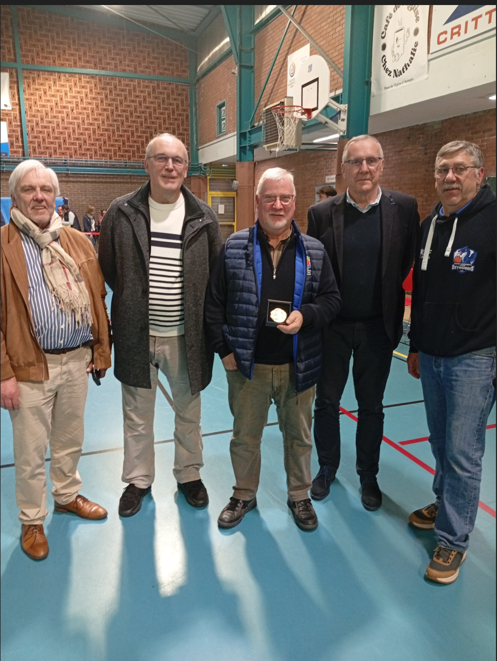 Déjà titulaire de la médaille d'Argent de la FFBB depuis 2014, Gilles DURANEL voit aujourd'hui son engagement de longue date pleinement reconnu en recevant, des mains de Paul MERLIOT au nom du président de la Fédération Française de Basket Ball, la médaille d'Or de la FFBB